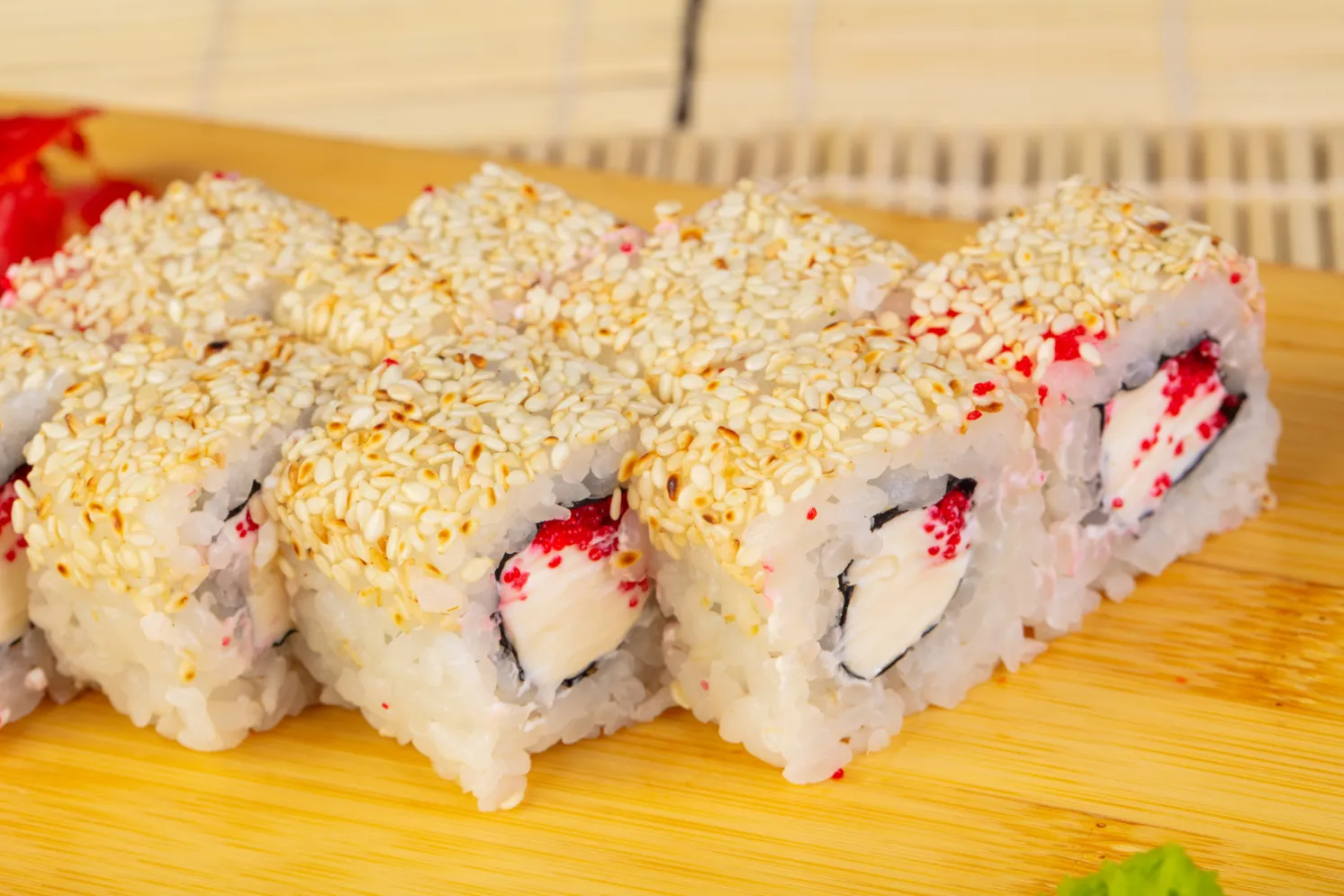 Classic Blend Of Crab, Avocado, And Cucumber Wrapped In Seaweed And Rice.